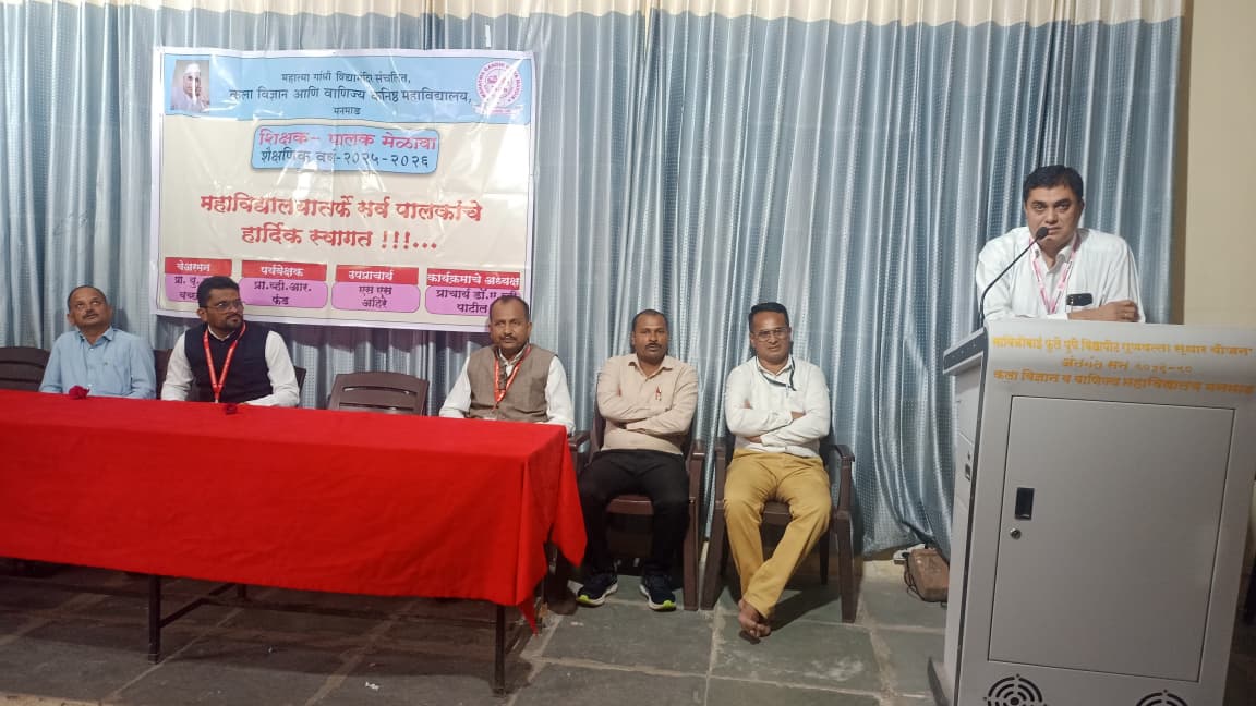 येथील महात्मा गांधी विद्यामंदिर संचलित, कला विज्ञान व वाणिज्य महाविद्यालय मनमाड येथे शिक्षक पालक सभेत ते बोलत होते. आपले अध्यक्षीय मनोगत व्यक्त करताना त्यांनी पालकांना उद्देशून पुढे म्हटले की, आजच्या या चर्चेतून आपल्याला आपल्या मुलाच्या प्रगतीची दिशा समजेल आणि त्यातील अडचणी दूर करण्यासाठी ठोस उपाय शोधता येतील आपल्या सूचनांमुळे महाविद्यालयाच्या शैक्षणिक व सांस्कृतिक वातावरणात नक्कीच सकारात्मक बदल घडतील. आपल्या सहकार्याने मुलांमध्ये असलेली सुप्त प्रतिभा विकसित करून त्यांना सक्षम जबाबदार आणि आदर्श नागरिक बनविण्याचा आमचा प्रयत्न आहे यात आपले सहकार्य निश्चित मिळणारच आहे. असा विश्वास प्राचार्य डॉ. अरुण व्ही. पाटील यांनी व्यक्त केला.