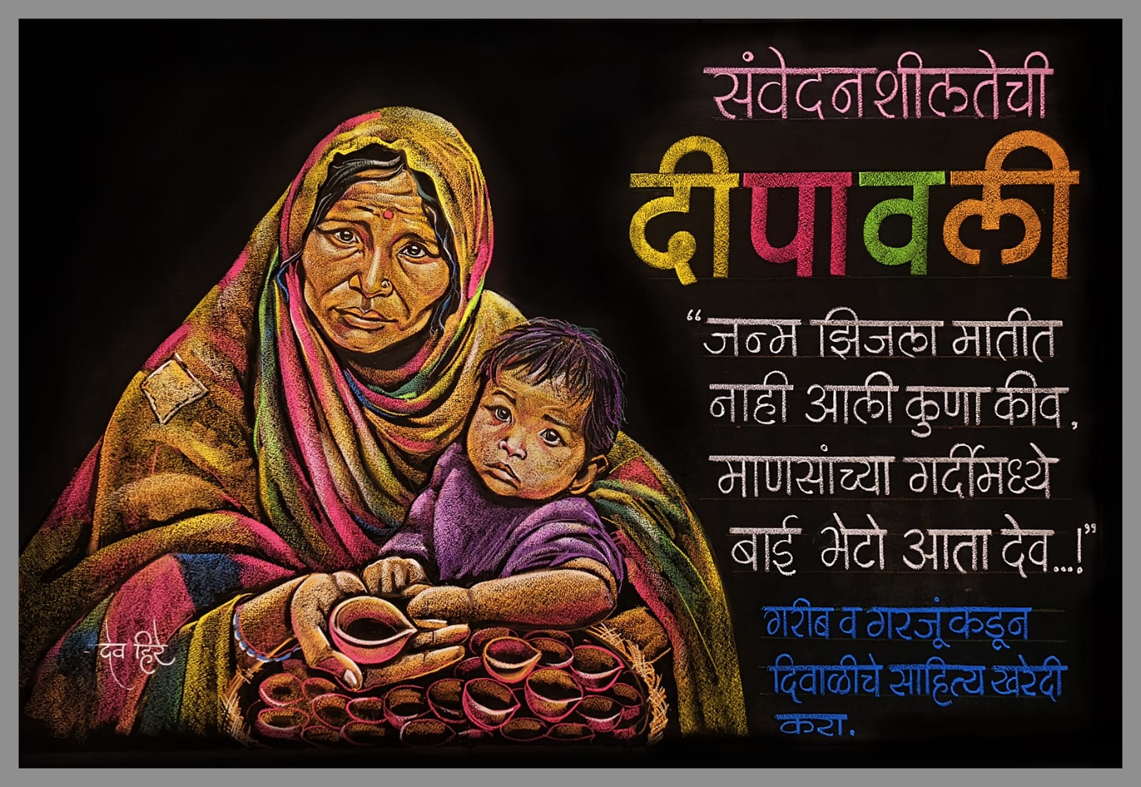 हा सण व उत्सव साजरा करताना आपण आपले घर नक्कीच प्रकाशमय करा पण आपल्या सभोवती बिकट परिस्थितीत जीवन जगणाऱ्या गरिबां विषयी मानवी संवेदना जागृत नक्की ठेवा.