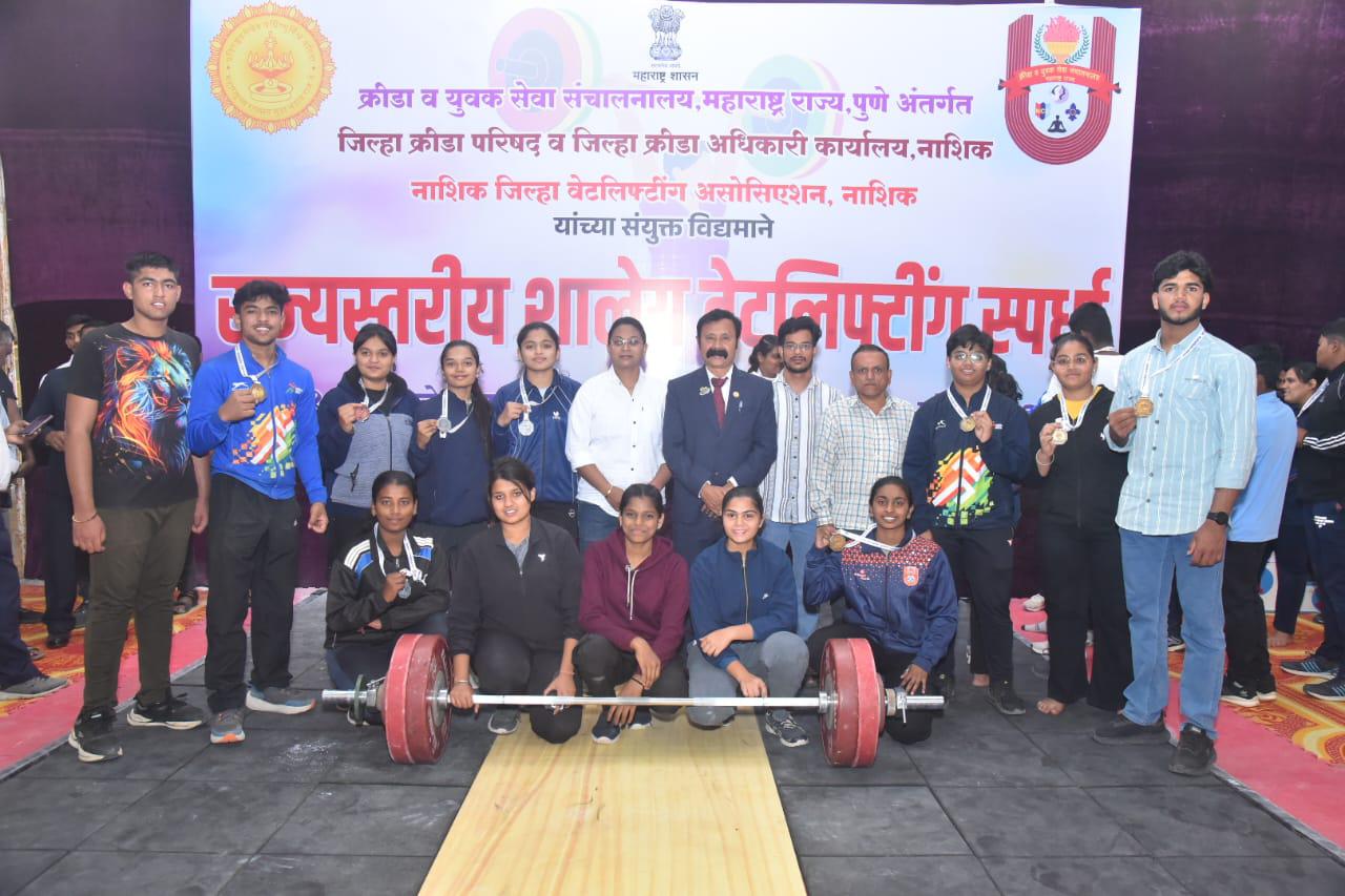 क्रीडा व युवक सेवा संचालनालय महाराष्ट्र राज्य पुणे जिल्हा क्रीडा परिषद व जिल्हा क्रीडा अधिकारी कार्यालय नाशिक आयोजित 17 व 19 वर्षातील मुले मुलींच्या राज्यस्तरीय शालेय वेटलिफ्टिंग स्पर्धा १० ते १२ नोव्हेंबर २०२५ दरम्यान संपन्न झाल्या